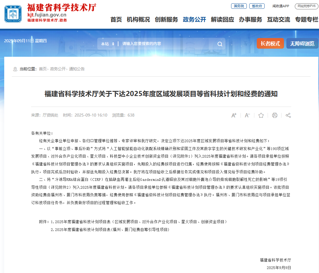 近日,福建省科學技術廳發(fā)布《福建省科學技術廳關于下達2025年度區(qū)域發(fā)展項目等省科技計劃和經(jīng)費的通知》,水投設計公...